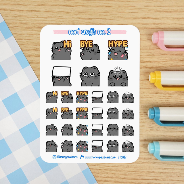 Dieser supersüße Stickerbogen mit insgesamt 30 lustigen, fetten Katzen Emojis ist perfekt für alle, die selbst ein schwarzes Kätzchen haben! Mit diesen kleinen Aufkleber kannst du sofort deine Gefühle in deinem Planer oder Tagebuch zum Ausdruck zu bringen. Die 6 unterschiedlichen Emotionen geben dir viele Möglichkeiten die passende Stimmung zu deinen Text oder Situation wiederzugeben.